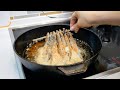 - Выложите обмакнутые в кляре кусочки мяса на нагретую сковороду.